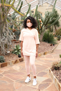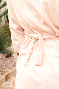 This one size fits most wrap is hand dyed with avocado seeds and pits for optimal nourishing and the gentlest pink. Just looking at this color feels like a long exhale to me. This garment is part of the Mend season of the Flowy Eco Challenge. This season is all about mending - inside and out. This wrap was inspired by watching my mom recover from a bilateral mastectomy and having to find shirts with pockets to store her drains. This wrap has pockets conveniently located on the inside on both sides. This wrap makes a wonderful gift for anyone having breast surgery, but it is also just a comfortable and easy over-shirt to wear anytime.